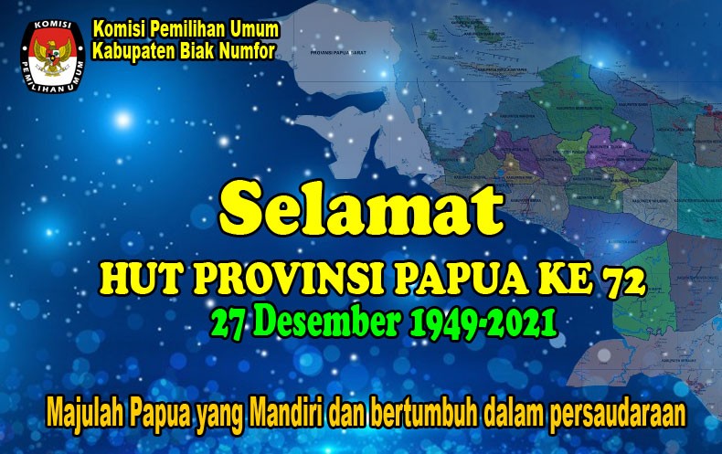 Hari Jadi suatu daerah merupakan momentum awal yang mempunyai nilai sejarah terhadap dimulainya penyelenggaraan pemerintahan dan pembangunan dalam rangka otonomi daerah yang amat menentukan kemajuan daerah dan kemakmuran masyarakat. Berdasarkan Peraturan daerah Provinsi Papua Nomor 6 Tahun 2016 tentang Hari jadi Provinsi papua, maka telah ditetapkan Hari Jadi Provinsi papua jatuh pada tanggal 27 Desember karena pada tanggal itu merupakan peristiwa momentum dimulainya peradaban baru yang ditandai dengan penyelenggaraan pemerintahan di Provinsi Papua. Penetapan tanggal 27 Desember 1949 sebagai Hari jadi Provinsi Papua berdasarkan saat pertama kali wilayah Nieuw Guinea menggunakan predikat Provinsi, yaitu Gouvernement van Nederlands Nieuw Guinea berdasarkan pengumuman Pejabat Gubernur Nederlands Nieuw Guinea J.P.K. Van Eechoud dalam Proclamatie van Nieuw Guinea pada tanggal 27 Desember 1949. Oleh sebab itu, Hari Jadi suatu daerah patutlah diperingati dan dirayakan oleh Pemerintah Daerah dan masyarakat sebagai bentuk Rasa Syukur atas berlangsungnya Pemerintahan dan Pembangunan di Daerah ini termasuk pembangunan Demokrasi yang terus berkembang kearah yang lebih baik. Marilah dengan momentum Peringatan 72 tahun Provinsi Papua, kita semua sebagai masyarakat di Provinsi ini semakin merasa memiliki dan mencintai Provinsi Papua sebagai satu kesatuan dalam Negara Kesatuan Republik Indonesia menuju masyarakat yang adil dan makmur. Selamat HUT Provinsi Papua ke 72, Majulah Papua yang mandiri dan bertumbuh dalam persaudaraan....