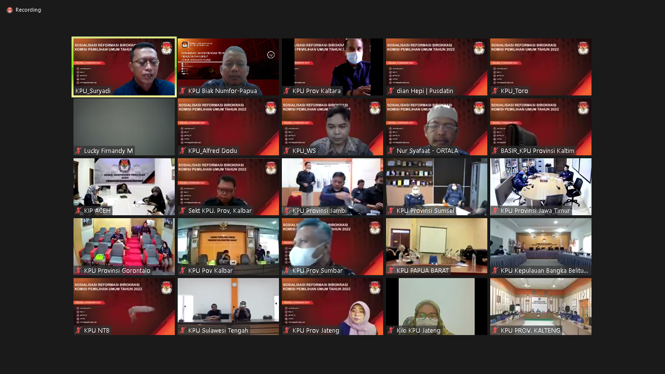 Dalam rangka memberikan pemahaman terkait Pelaksanaan Reformasi Birokrasi di lingkungan KPU dan agar Satker KPU dapat bekerja dengan baik dan memahami Road Map agenda Reformasi Birokrasi, maka pada Selasa (8/2 2022) dilaksanakan Sosialisasi Reformasi Birokrasi yang diikuti Jajaran KPU Pusat dan KPU Provinsi serta Komisioner dan sekretaris KPU Kabupaten Biak Numfor dan menghadirkan narasumber dari Kementerian Pendayagunaan Aparatur Negara dan Reformasi Birokrasi (PAN RB) Republik Indonesia. Ketua KPU Republik Indonesia, Ilham Saputra dalam arahan pembukaan Sosialisasi menyampaikan Sosialisasi ini merupakan bentuk Komitmen KPU menciptakan pemerintahan yang bersih serta terima kasih atas upaya yang telah dilakukan Tim Reformasi Birokrasi pada Jajaran KPU Provinsi maupun KPU kabupaten/ Kota seluruh Indonesia yang telah berupaya semaksimal mungkin menjadikan Birokrasi KPU semakin baik efisien serta efektif dalam melayani mamsyarakat. Dari hasil evaluasi Indeks reformasi Birokrasi, pada tahun 2020 KPU meraih Nilai sebesar 71,63 dengan kategori sangat baik namun belum mencapai target Renstra sebesar 77 dan untuk Tahun 2021 sementara masih menunggu penetapan dari Kementerian PAN RB. Oleh sebab itu masih banyak yang mesti dilakukan oleh Jajaran KPU untuk menaikkan level reformasi birokrasi mengingat keberhasilan reformasi Birokrasi sangat menentukan pelaksanaan persiapan Pemilu dan Pemilihan Serentak 2024. Lebih Lanjut Ilham Saputra menekankan pentingnya seluruh jajaran Komisioner KPU dari pusat sampai di Provinsi dan Kabupaten Kota yang harus menjadi contoh yang baik dalam melaksanakan Birokrasi sesuai dengan ketentuan yang ada dan tidak menyulitkan dalam setiap pelaksanaan Tahapan Pemilu/ Pemilihan. Sementara itu Narasumber dari Kementerian PANRB Umu Hanidah sangat mengapresiasi arahan Ketua KPU mengingat pelaksanaan Reformasi Birokrasi yang berjalan dengan baik akan sangat berkorelasi terhadap kinerja pencapaian hasil Pemilu dan Pemilihan. Umu Hanfiah juga menekankan pentingnya Reformasi Struktural yang menurut arahan Presiden sudah tidak dapat ditunda-tunda lagi sehingga regulasi yang rumit dan menghambat kreatifitas kerja harus dipangkas dan disederhanakan. Disamping itu kompetensi Sumber Daya manusia ASN midsetnya harus goal oriented, berorientasi hasil serta adaptif dengan Kemajuan Ilmu Pengetahun dan Teknologi dan juga dapat berpikir kreatif dan inovatif untuk memecahkan masalah dan memberikan pelayanan terbaik pada masyarakat. #temanpemilih #KPUbiaknumfor