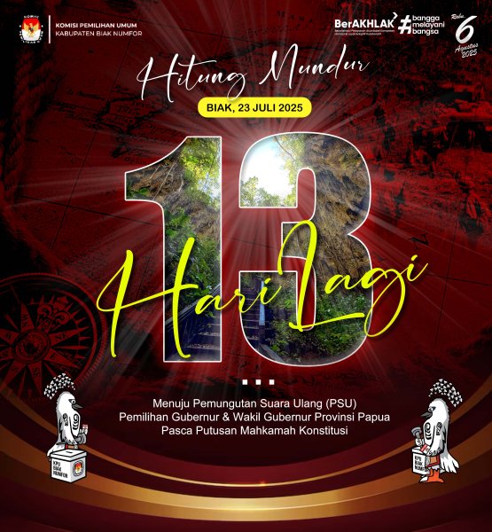 #TemanPemilih yang ada di Provinsi Papua terlebih khusus di Kabupaten Biak Numfor, jang sampe kam lupa e ! 13 Hari lagi menuju Pemungutan Suara Ulang (PSU) Pemilihan Gubernur & Wakil Gubernur Provinsi Papua Pasca Putusan Mahkamah Konstitusi. #KPUBiakNumfor #KPUMelayani ....
