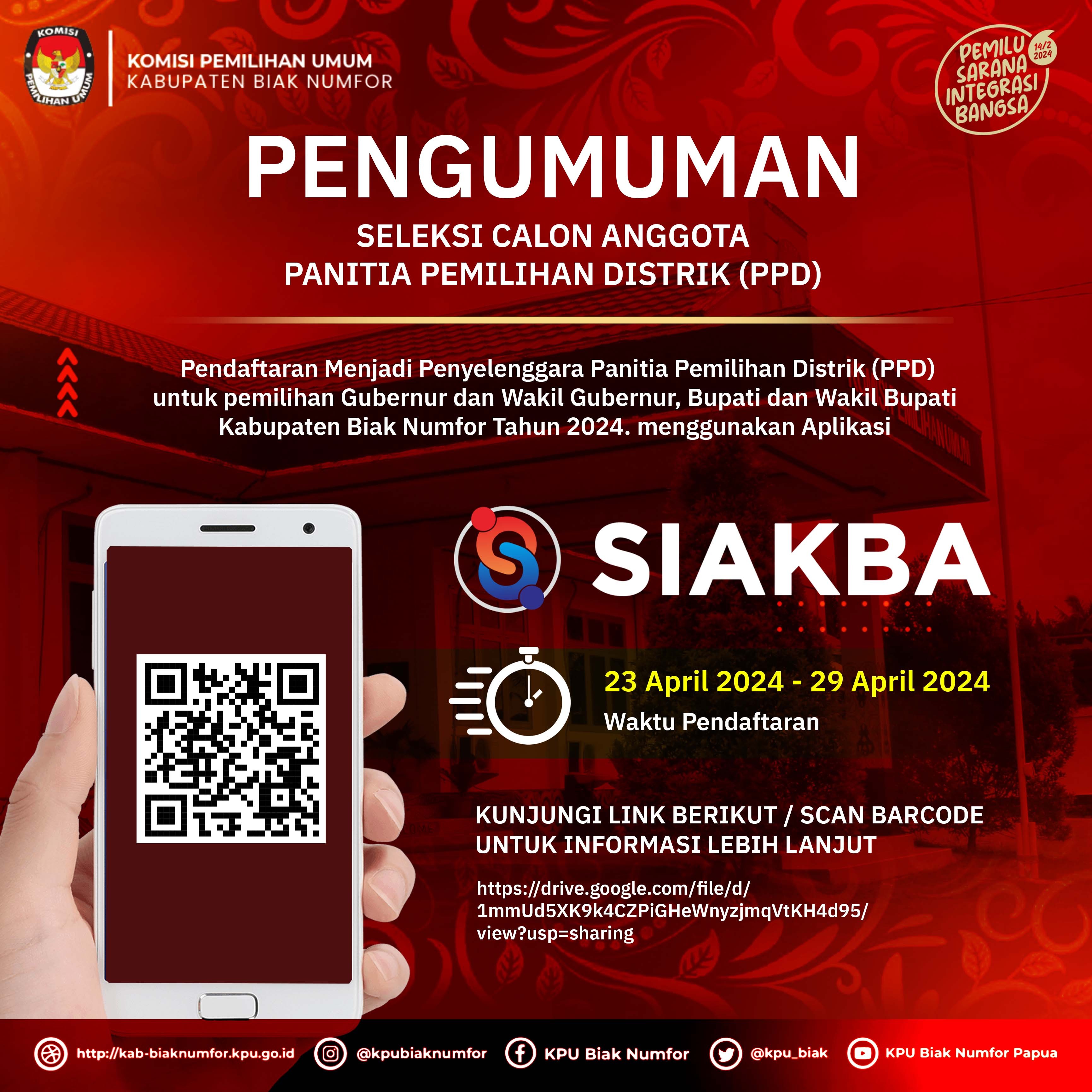 Dalam Rangka Pembentukan Calon Anggota Panitia Pemilihan Distrik untuk Pemilihan Gubernur dan wakil Gubernur,Bupati dan Wakil Bupati, dan Walikota dan Wakil Walikota Tahun 2024, KPU Kabupaten Biak Numfor mengundang Warga Negara Indonesia yang memenuhi Kualifikasi untuk mendaftarkan diri menjadi Panitia Pemilihan Distrik.