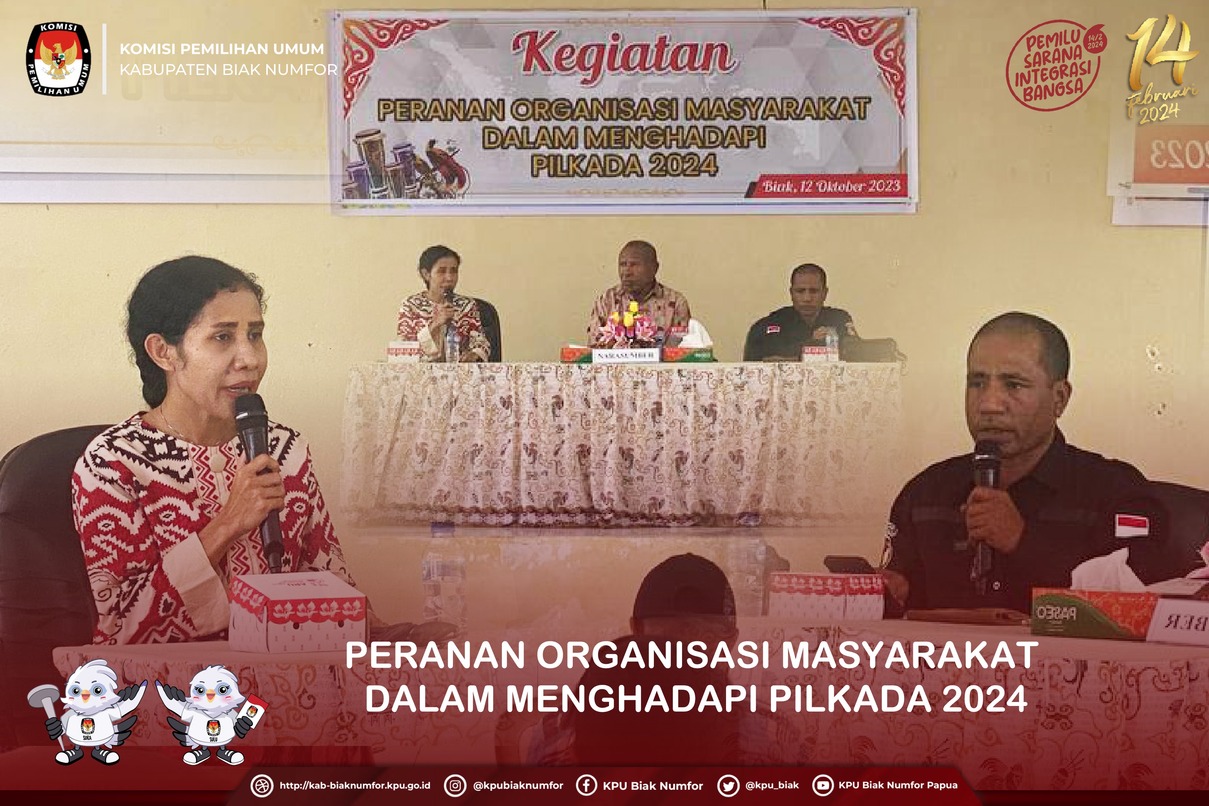 Kegiatan yang bertujuan untuk meningkatkan peranan organisasi masyarakat dalam menghadapi pemilihan kepala daerah tahun 2024 ini juga menghadirkan ketua Bawaslu Kabupaten Biak Numfor Simon Yason Mandowen sebagai narasumber.