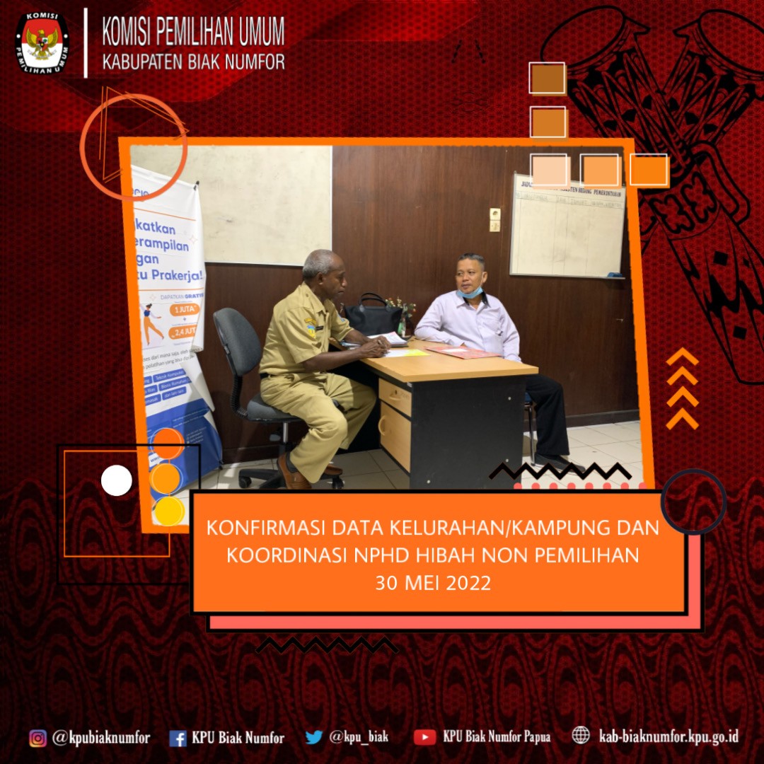 #TemanPemilih, Sehubungan terbitnya Keputusan Menteri Dalam Negeri (Kepmen) Nomor 050-145 Tahun 2022 tentang Pemberian dan Pemutakhiran Kode, Data Wilayah Administrasi Pemerintahan dan Pulau, maka di Kabupaten Biak Numfor terjadi penambahan Wilayah Kelurahan sebanyak 6 Kelurahan namun ada 3 Kampung yang tidak diakomodir dalam Kepmendagri tersebut yang tentunya akan mempengaruhi pelaksanaan Pemilu Serentak 2024. Untuk itu pada hari Selasa (30/5/2022) Sekretaris KPU Kabupaten Biak Numfor dan Kasubag Perencanaan Data dan Informasi serta Kasubbag Hukum dan SDM KPU Kabupaten Biak Numfor melakukan kunjungan ke Pemerintah Daerah Kabupaten Biak Numfor melalui Plh, Asisten I Tata Pemerintahan Setda Kabupaten Biak Numfor untu melakukan konfirmasi data-data perubahan wilayah Kampung/ Kelurahan di Biak Numfor. Sekretaris KPU Kabupaten Biak Numfor, Agus Filma dalam penyampaiannya menegaskan kepastian jumlah Kampung dan Kelurahan merupakan hal yang sangat penting untuk menjadi acuan dalam proses perencanaan KPU Kabupaten Biak Numfor dalam menghadapi Pemilu Serentak 2024 mendatang sehingga berharap 3 kampung yang pada tahun 2019 mengikuti Pemilu dan saat ini belum diakomodir dalam Kepmendagri bisa segera diproses kode wilayahnya sehingga kampung-kampung tersebut dapat diakomodir dalam Data Pemilu 2024. Pada kesempatan ini juga dikoordinasikan NPHD Hibah Non Pemilihan tahun 2022 yang direncanakan dianggarkan Pemda Biak Numfor bagi KPU Kabupaten Biak Numfor untuk mendukung pemutakhiran data Pemilih. Sementara Plh, Asisten I Setda Biak Numfor, Semuel Rumakeuw, SH menegaskan komitmen Pemda Biak Numfor untuk terus memperjuangkan tiga kampung yang belum masuk dalam Kepmendagri kerena realitasnya ketiga kampung tersebut ada dalam aktifitas pelayanan pemerintahan dan pembangunan di kabupaten Biak Numfor, sehingga dalam waktu dekat akan kembali diproses sesuai prosedur yang ada. Terkait dengan Dana Hibah Non Pemilihan bagi KPU Kabupaten Biak Numfor, Semuel Rumakeuw yang juga menjabat sebagai Kabag Hukum Setda Biak Numfor akan mempelajari Draft NPHD untuk diproses sesuai ketentuan yang berlaku. Sesuai Kepmendagri 050-145 Tahun 2022, Jumlah Kelurahan di Kabupaten Biak Numfor sudah diakomodir bertambah 6 kelurahan namun masih terdapat tiga kampung yaitu Kampung Yafdas, Sorido dan Makuker yang belum dimasukkan dalam Kepmendagri tersebut sedangkan realitas di lapangan ketiga Kampung tersebut ada dan menjalankan aktifitas Pemerintahan dan pembangunan. Adapun Dokumentasi Kegiatan :