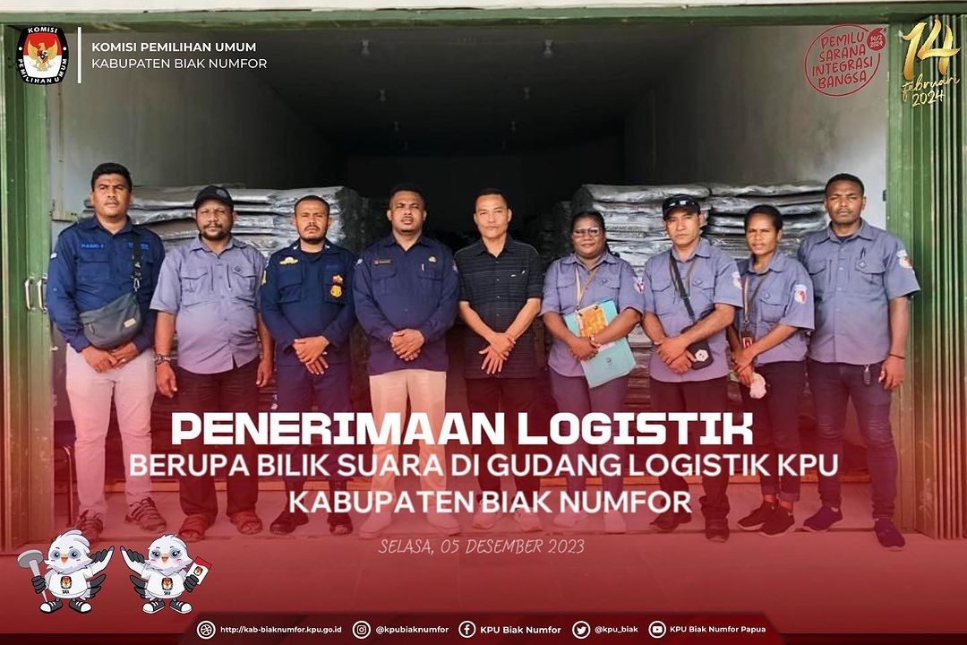 #TemanPemilih Komisioner KPU Kabupaten Biak Numfor,Asdar Djabar barsama Plh Sekretaris KPU Biak Numfor,Sumberbis Sroyer menerima Logistik Berupa Kotak Suara, Selasa (05/05/2023) Turut hadir dalam pengawasan Bawaslu Kabupaten Biak Numfor