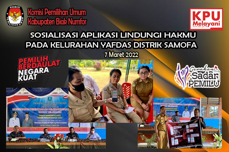Dalam rangka mensosialisasikan Aplikasi Mobile Lindungi Hakmu yang dikembangkan Komisi Pemilihan Umum (KPU) dalam rangka memberikan kesempatan untuk melakukan Cek Data Pemilih untuk memastikan warga telah terdaftar dalam daftar Pemilih, maka KPU Kabupaten Biak Numfor melakukan sosialisasi tersebut dengan berpartisipasi dalam Parade Yosim Pancar dan Wor pada Jumat (18/3/2022) sebagai bagian dari rangkaian acara syukuran 3 Tahun Kepemimpinan Bupati Biak Numfor. Dalam Parade Yospan yang diikuti 3 Komisioner, Sekretaris dan Kasubag serta Staf KPU Biak Numfor dan siswa siswi SMK Negeri 1 Biak yang melakukan Praktek Kerja Industri (Prakerin) dilaksanakan Prosesi Tarian Yospan dalam Parade dengan start di Jalan Selat Makassar dan finis di Lapangan Gelanggang Remaja Cenderawasih dan pada titik star KPU Biak Numfor melakukan launching penggunaan Aplikasi Mobile Lindungi Hakmu di Kabupaten Biak Numfor yang ditandai dengan penyerahan Replika HP yang didalamnya memuat Aplikasi Lindungi Hakmu dari Komisioner Divisi Perencanaan dan Data KPU Biak Numfor kepada Bupati yang diharapkan menjadi Komitmen KPU dan Pemda Biak Numfor untuk terus mensosialisasikan Aplikasi Lindungi Hakmu untuk memastikan masyarakat sudah terdaftar dalam daftar Pemilih. Video selengkapnya klik link dibawah ini : ➡️ YouTube : KPU Biak Numfor Papua https://youtu.be/3IlYPDVSeYI