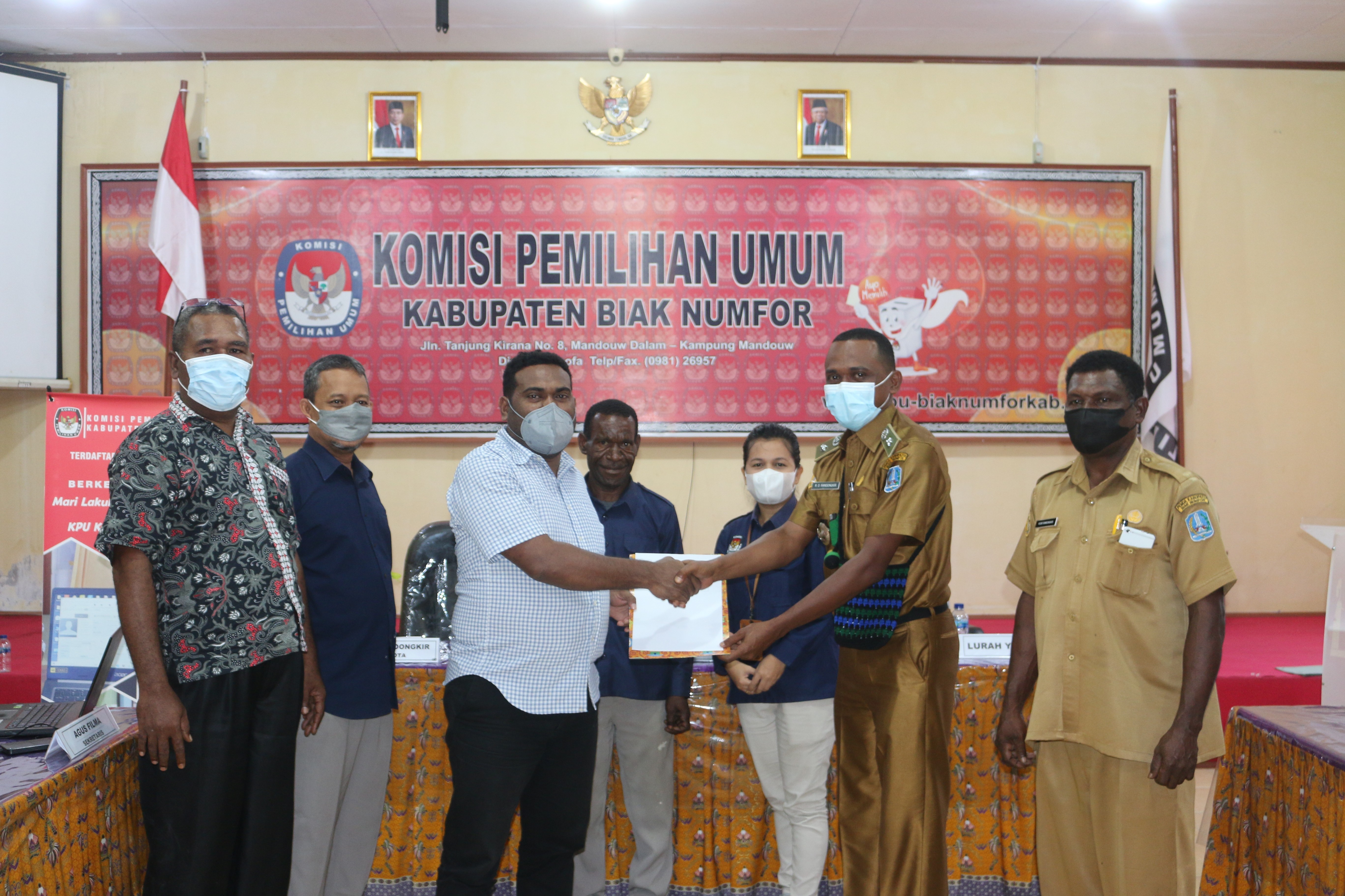 Dalam proses pemutakhiran Data Pemilih Berkelanjutan (DPB) yang dilakukan KPU Kabupaten Biak Numfor, salah satu upaya yang dilakukan Tim Data KPU Biak Numfor adalah dengan mencari data sandingan di berbagai pemangku kepentingan yang ada di kabupaten Biak Numfor baik pada Organisasi Pemerintah, organisasi Kemasyarakatan maupun Organisasi keagamaan sehingga diharapkan Data Pemilih di KPU Kabupaten Biak Numfor sesuai Daftar Pemilih Tetap (DPT) pada Pemilu terakhir di Tahun 2029 terus dilakukan perbaikan untuk menghasilkan Data Pemilih yang valid. Untuk itu pada Selasa (21/9 2021) KPU Biak Numfor mendapat kunjungan Kepala Kelurahan Yafdas Distrik Samofa yang mendukung KPU Biak Numfor dengan menyerahkan 1.069 data Pemilih yang telah terdata di Kelurahan untuk disandingkan dengan data Pemilih di KPU Biak Numfor sehingga Pemilih yang belum terdaftar dapat ditambahkan dan yang sudah Tidak Memenuhi Syarat (TMS) dapat dikeluarkan bahkan identitas Data pemilih yang masih mengalami kesalahan dapat dilakukan ubah data untuk menjadikan Data Pemilih semakin valid dan berkualitas. Disamping itu dengan Kunjungan ini juga telah dilakukan Penandatanganan Perjanjian Kerjasama antara KPU Biak Numfor dan Pemerintah Kelurahan untuk Pemutakhiran Data Pemilih Berkelanjutan (DPB). Komisioner Divisi Perencanaan, Data dan Informasi KPU Biak Numfor, Matheus G. Ronsumbre menyampaikan terima kasih atas dan apresiasi atas upaya Pemerintah Kelurahan untuk mendukung data pemilih sebagai bahan sandingan apalagi Kelurahan Yafdas merupakan kelurahan baru sehingga data ini dapat dijadikan bahan untuk membagi data Pemilih berdasarkan wilayah Pemerintahan terbaru. Oleh sebab itu data Pemilih yang diberikan oleh Pemerintah Kelurahan ini akan diolah oleh KPU Biak Numfor menjadi data Pemilih Berkelanjutan untuk menjadi data yang valid untuk dipergunakan pada Pemilu dan Pemilihan Serentak 2021. Selanjutnya Matheus G. Ronsumbe menyampaikan bahwa dengan Perjanjian Kerjasama yang dilakukan dalam Proses Pemutakhiran Data Pemilih Berkelanjutan (DPB), KPU Kabupaten Biak Numfor akan menjaga kerasahasiaan data Pemilih sebagai salah satu batasan yang menjadi bagian dari kerjasama yang dilakukan. Sementara itu kepala Kelurahan Yafdas, Revelino Randongkir menjelaskan perbaikan data penduduk san data pemilih merupakan salah satu Upaya Pemerintah Kelurahan untuk menata administrasi di kelurahan yang baru sebagai bantuk pelayanan terbaik kepada masyarakat. Oleh sebab itu Kepala Kelurahan berharap data-data pemilih yang diberikan dapat segera diolah oleh KPU Biak Numfor sehingga data-data di Pemerintah Kelurahan semakin Valid dan berkualitas untuk mendukung Pemilu dan Pemilihan untuk Demokrasi yang lebih baik di kabupaten Biak Numfor.