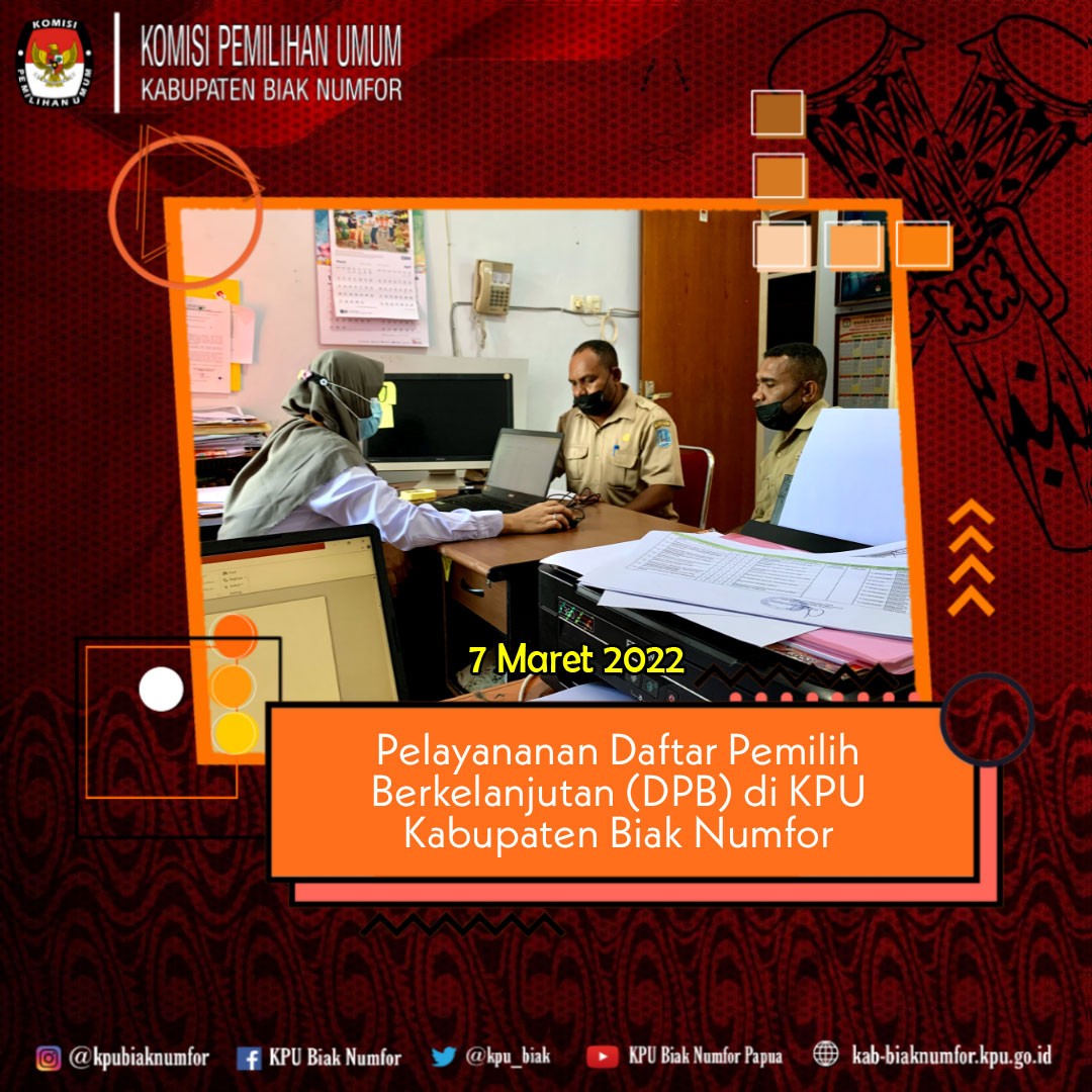 Dalam rangka mendapatkan Data yang Mutakhir, benar dan komporehensif, maka KPU terus memberikan kesempatan bagi masyarakat yang ingin mengecek datanya di KPU Biak Numfor untuk memastikan mereka sudah terdaftar dalam Data Pemilih sebagai syarat untuk dapat menggunakan Hak Pilih pada Pemilu dan Pemilihan Serentak tahun 2024.